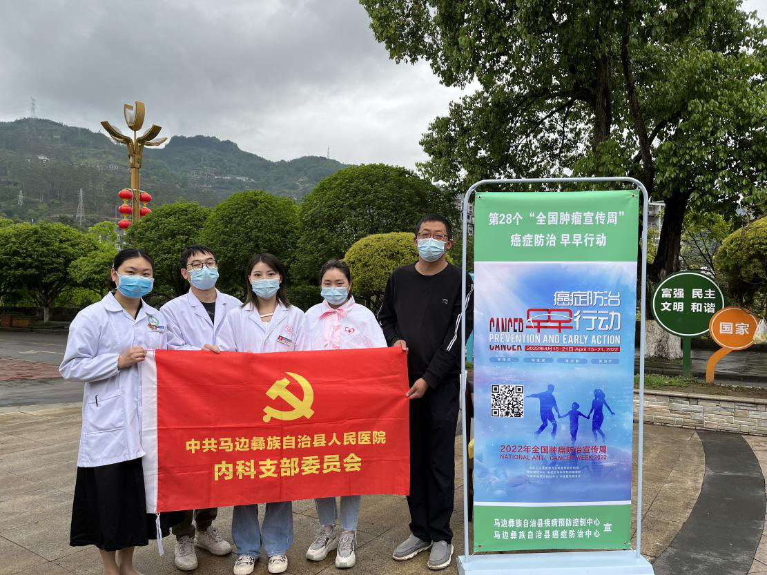 2022年4月15日至21日是第28个全国肿瘤防治宣传周。4月15日,马边彝族自治县疾病预防控制中心联合我院癌防中心、内科支部、中国南丁格尔护理服务总队乐山市护理学会分队马边彝族自治县人民医院支队开展“癌症防治早早行动”为主题的癌症防治义诊、咨询活动。