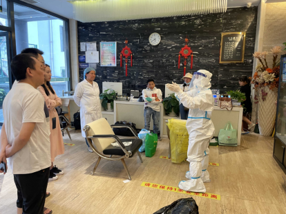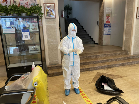 5月7日下午16:30,护理部主任向朝艳接到卫健局的通知,要求我院选派一名护士到大风顶宾馆为隔离点志愿者培训隔离衣的正确穿戴方式和医疗废物处置事项,由于该时间点正是下班点,因此安排医务人员就成了困难的事情。在短暂思考后,向朝艳抱着试试看的心态联系了我院麻醉科护士长李佳媛,李佳媛在了解事情的原委后二话不说,简单询问了相关培训内容后立即准备好物资前往大风顶宾馆。