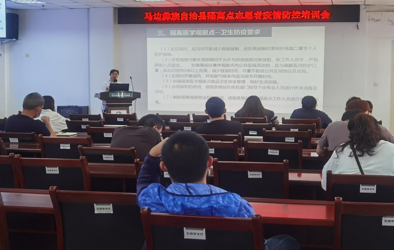 为切实做好集中医学观察点疫情防控志愿者服务工作,使志愿者全面深入了解疫情防护相关知识,5月12日9时,马边彝族自治县应急指挥部应急处置组在县人民医院门诊五楼学术厅组织开展集中医学观察点志愿者培训会,共计16名志愿者参加培训。