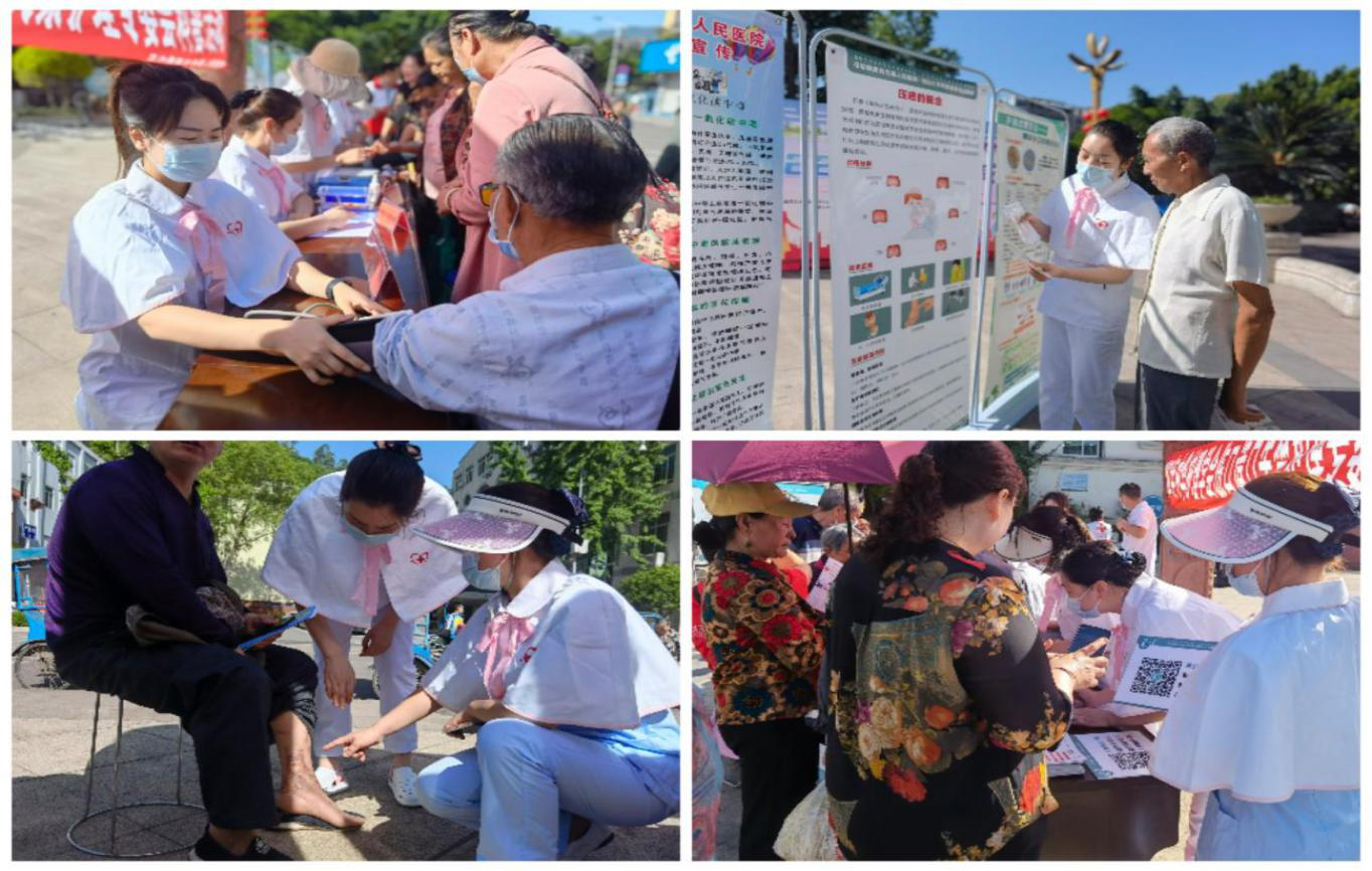 活动现场吸引了众多群众,前来咨询的人员络绎不绝,医护人员认真接待每一位前来咨询的群众,为群众免费提供量血压、测血糖,同时指导线上挂号、缴费等操作流程,针对不同人群的需求,讲解如何预防压疮、如何正确处理伤口、脑卒中的临床表现及处理方法、高血压的管理、糖尿病的管理、呼吸道疾病的症状、注意事项及预防措施等知识。医护人员用易懂通俗的语言,耐心地解答群众提出的各种疑难问题,有利于群众获得专业的护理方法和预防知识,受到了群众的一致好评。