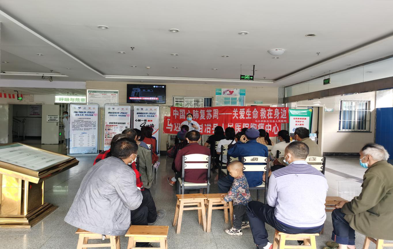 2022年6月1日,马边彝族自治县人民医院胸痛中心主治医师吴小康、护师刘学琴向病区内患者及家属进行心肺复苏基本常识宣教,重点讲解了心肺复苏抢救的黄金时间、如何判断患者意识及抢救方法和措施,提高患者及家属对急救重要性的认识,在自己身体健康允许的情况下,以患治患,救在身边。