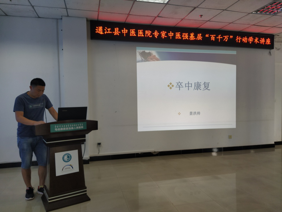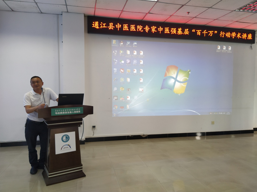 为进一步加强医务人员中医技术理论和实际操作水平,提升我院中医药服务能力,2022年6月9日,我院邀请通江县中医医院中医强基层“百千万”行动帮扶专家副主任医师景洪帅、护师周萍在门诊部五楼学术厅举行中医适宜技术推广培训讲座,县中医医院院长郭业辉、县中医医院副院长罗晓东、县中医医院副院长吴成楷以及全院医务人员共计70余人参加了此次培训,讲座由县中医医院副院长罗晓东主持。