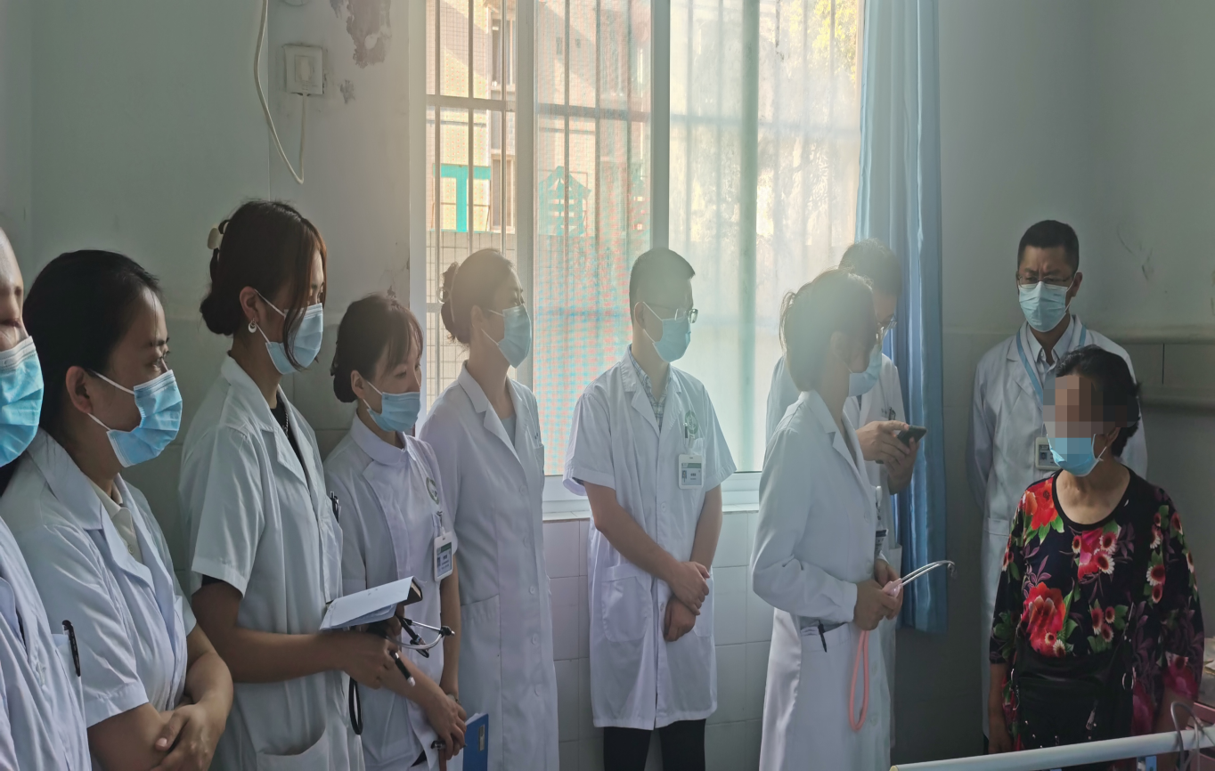 2022年8月11日8时,内一科举办第一期多学科联合教学查房,四川大学华西医院下派专家吕庆国、刘真真、杨婷,县人民医院院长李蕾,县人民医院副院长张睿,县中医医院副院长金建刚及内一科全体医务人员参加教学查房。本次查房由四川大学华西医院下派专家杨婷主持。呼吸与危重症医学科医生汇报病例情况后,心血管内科、内分泌科、老年病科等多个学科的专家进行点评。