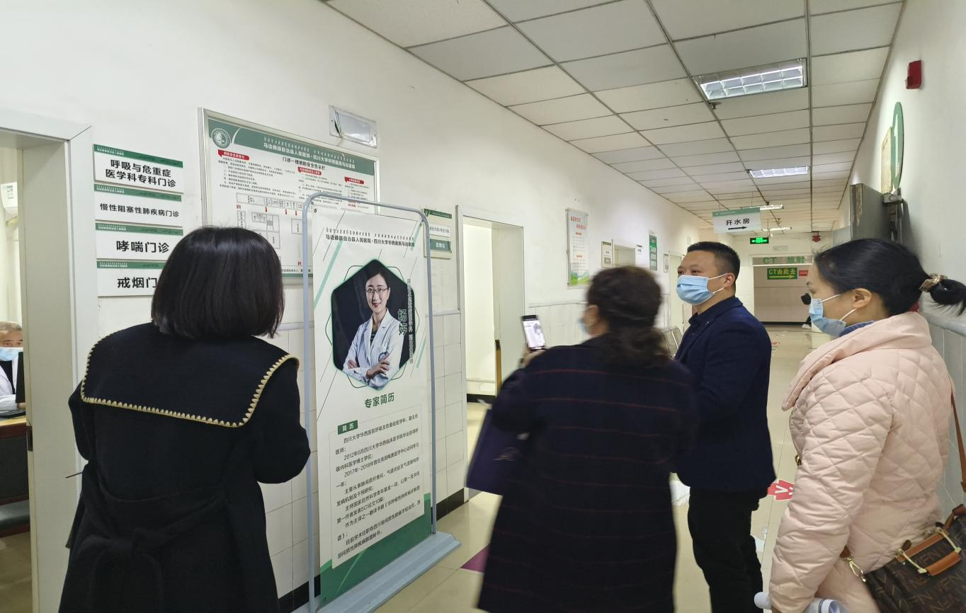 座谈会结束后,我院陪同人员带领金口河人民医院同仁到呼吸与危重症医学科专科门诊及住院部进行参观。呼吸与危重症医学科副主任吴小康对专科门诊、住院病房、纤维支气管镜室及睡眠检测室创建的基本情况一一进行了介绍,并针对专科建设病历书写进行了深入交流学习。呼吸与危重症医学科护士长刘佳丽对综合治疗室、肺功能室、慢病管理进行了详细介绍。
