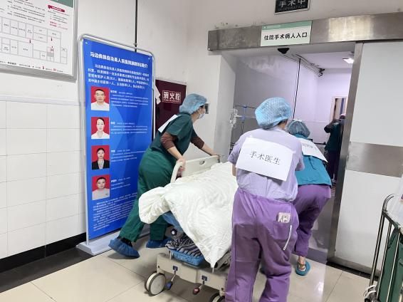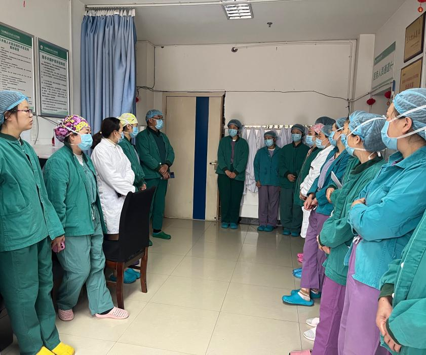 演练现场实景模拟自然分娩产后大出血情景:中午12点,麻醉科接到妇产科电话告知有一名产妇顺产后大出血,需要立即进行手术治疗。患者接入手术室后,巡回护士立即通知上级增援进行抢救工作。麻醉医生准备插管用物、巡回护士准备手术用物,手术医生将病人送入手术间后向麻醉医生介绍患者详细情况,三方核查病人后立即开始手术。术中发现患者宫缩乏力大量出血,出血量2000ML以上,医生下医嘱立即输血,同时按摩子宫,行子宫捆绑,给予宫缩药物。经过一个小时抢救,患者生命体征平稳,器物清点无误后关腹。手术结束患者被送入ICU继续观察病情,各岗位人员各司其职、分工明确,给予产妇及时的救治。
