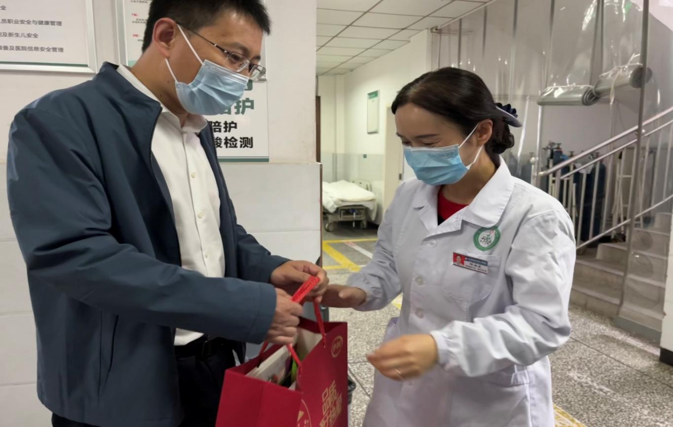 在鲜花怒放、轻舞飞扬的五月,我们迎来了属于白衣天使的节日—“5.12”国际护士节,为促进我院护理工作的发展,弘扬南丁格尔精神,激励全体护士爱岗敬业、积极进取、勇于奉献, 5月11日,我院工会对护理人员开展慰问活动,县人民医院党委书记李蕾,县人民医院院长吕庆国,县中医医院院长郭业辉,县人民医院副院长、工会主席张睿及护理部一行人参与此次慰问。