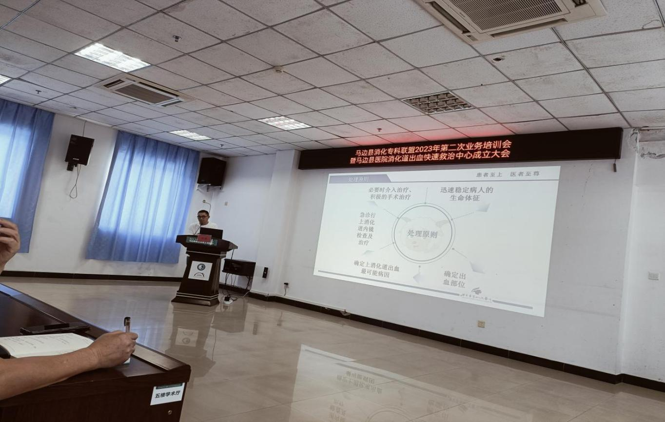 为使县域内消化道出血患者得到快速有效的救治,2023年8月3日下午14时,马边彝族自治县人民医院正式成立“消化道出血快速救治中心”,这是继“卒中中心、胸痛中心”等救治中心后成立的又一个急救中心,也是马边彝族自治县消化专科联盟的进一步突破。核心科室涵盖急诊、消化内科、普外科、ICU介入、麻醉科等多个学科,将传统的专科医生诊疗患者的模式变为多学科诊疗模式,危急时刻能快速响应,启动绿色通道,将急性上消化道出血多学科协同救治工作前移,在最短时间内为患者提供最有效的救治方案,缩短抢救时间,提高抢救成功率。马边彝族自治县人民医院副院长伍学明、马边彝族自治县中医医院副院长罗晓东、四川大学华西医院消化内科吴春成教授、自贡市第四人民医院普外科胡强主治医师出席本次活动。