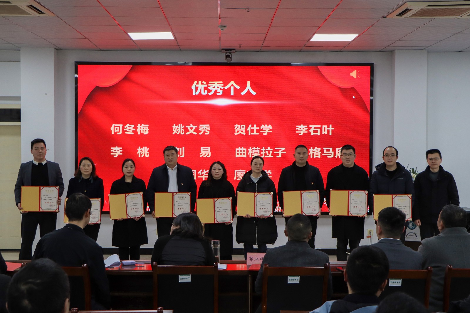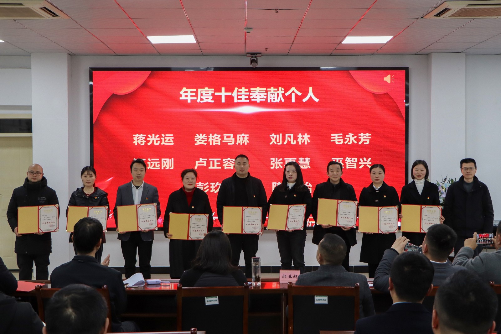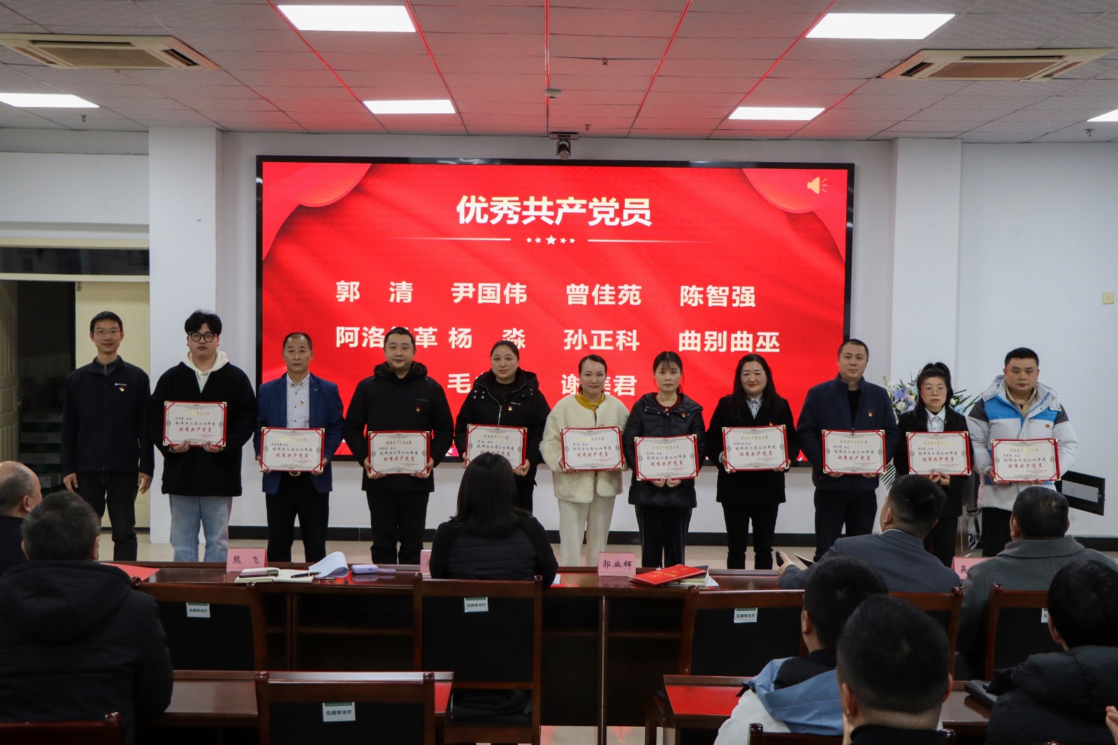 最后,县人民医院副院长王毅宣读《马边彝族自治县人民医院关于表扬2024年度先进集体、优秀共产党员、年度考核优秀个人及年度十佳奉献个人的通知》并对受表扬的集体和个人进行颁奖。
