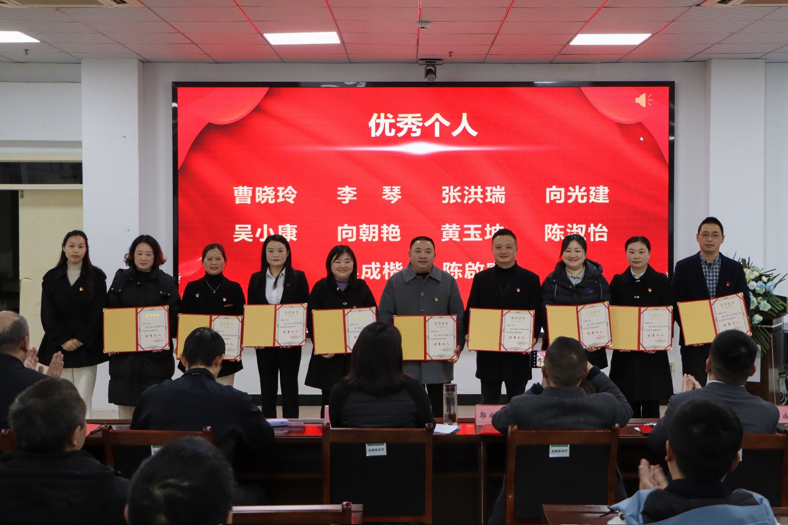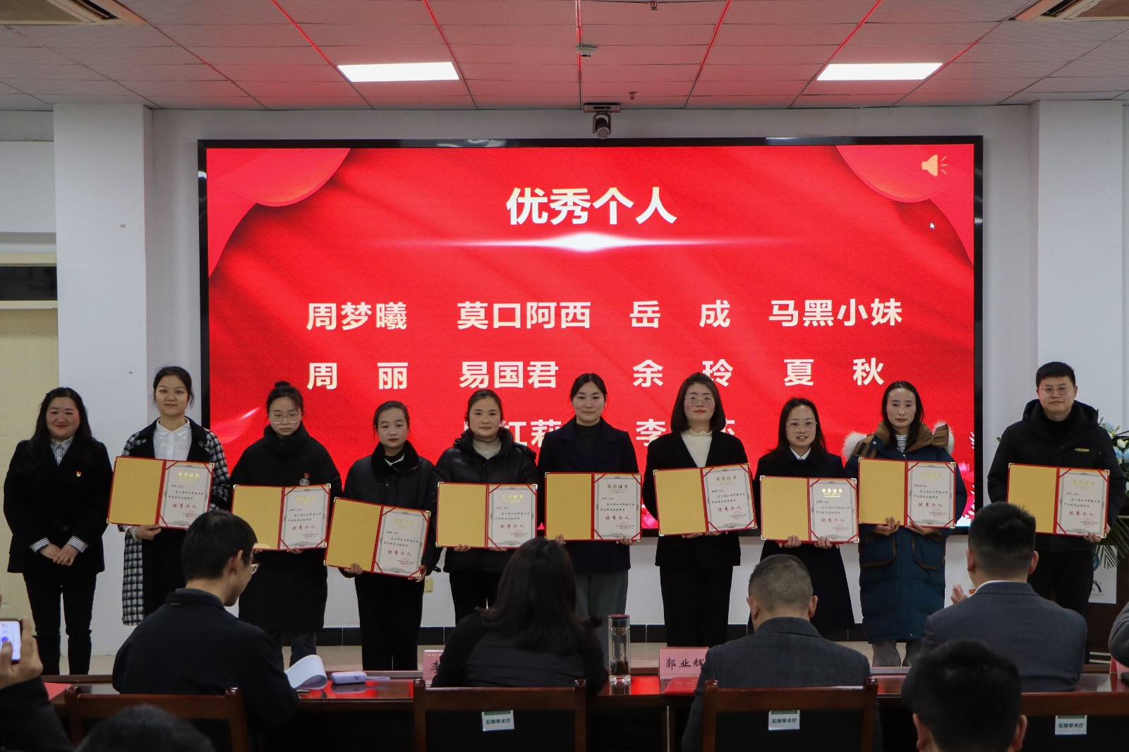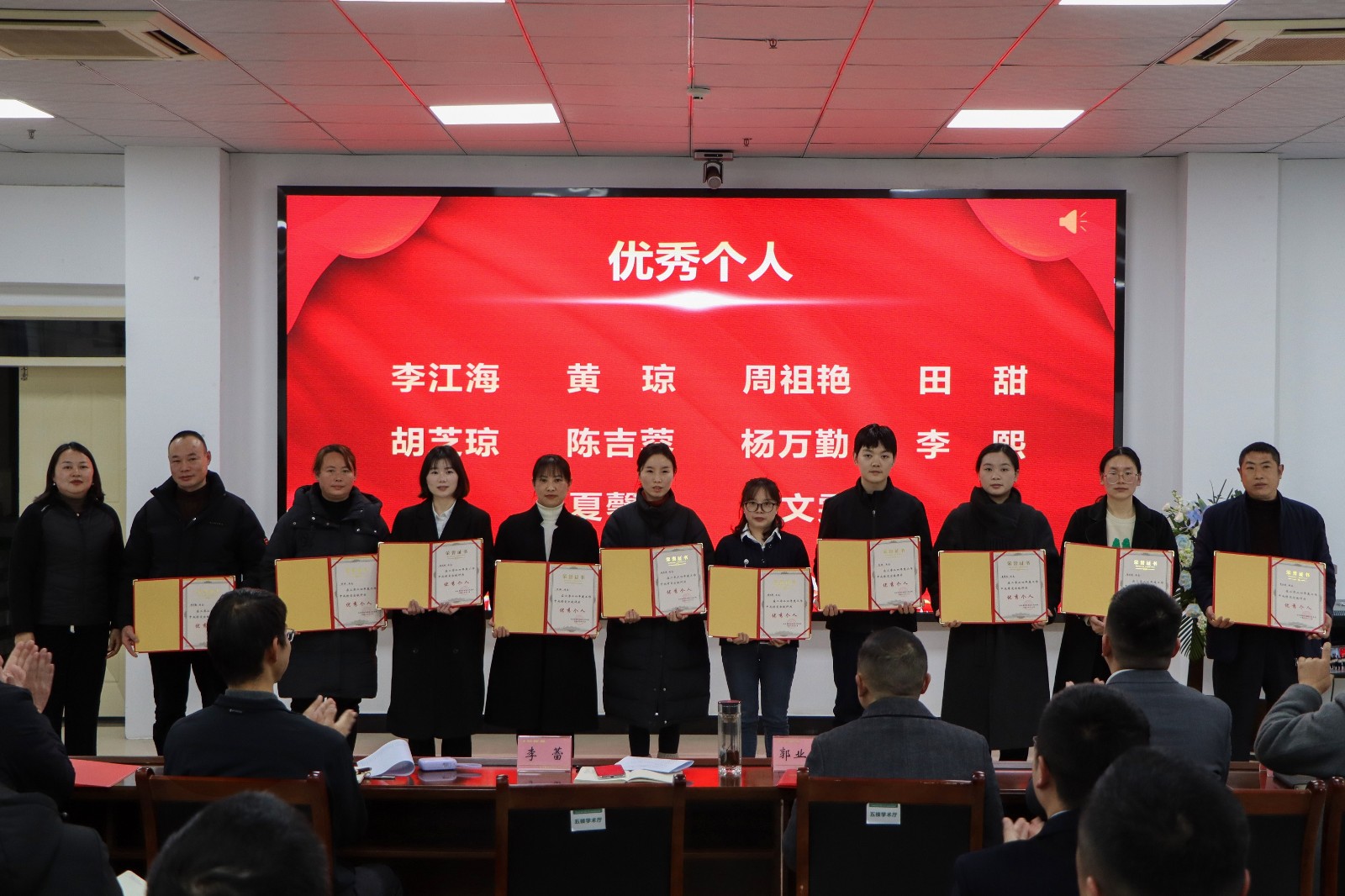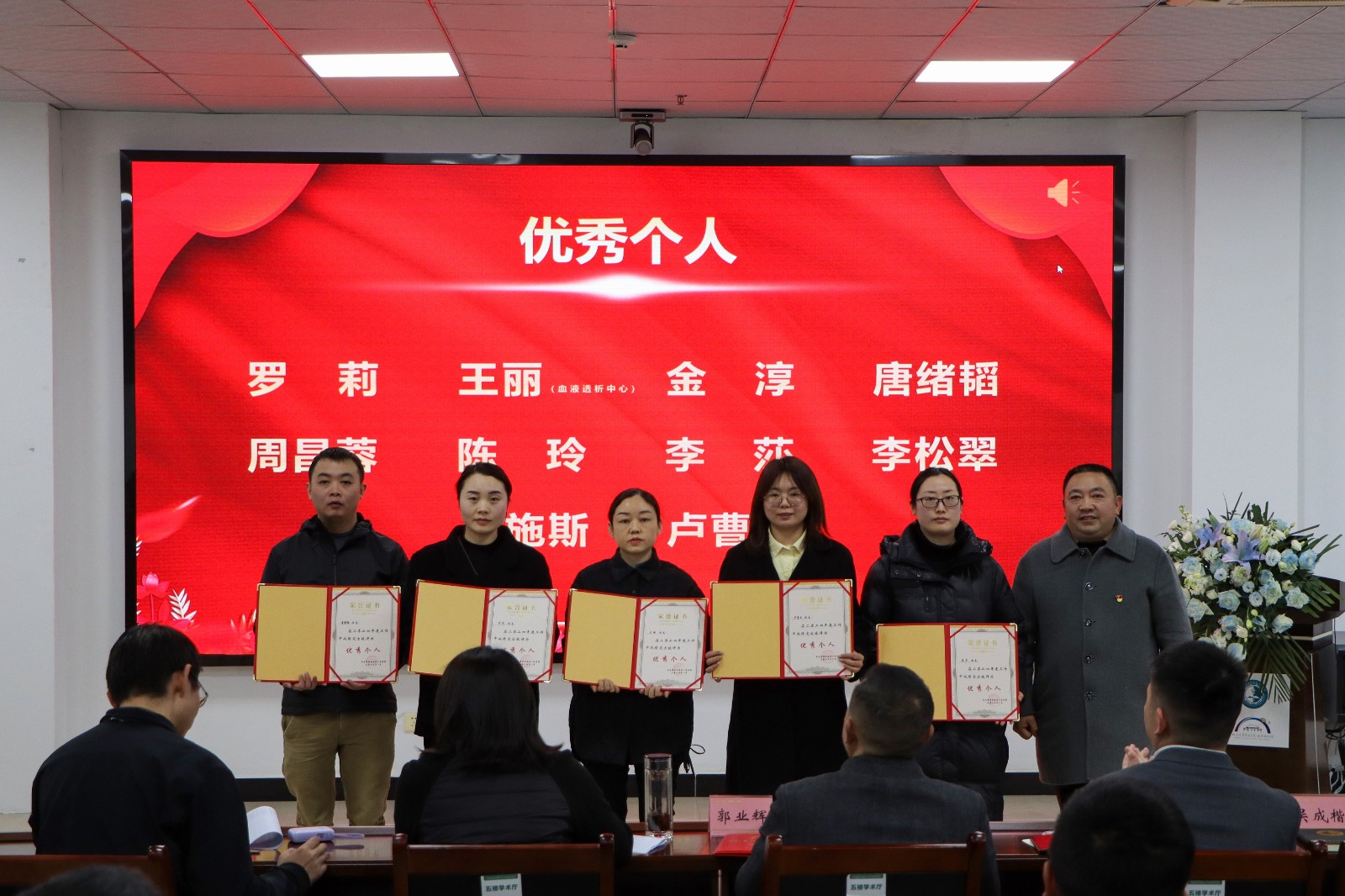 最后,县人民医院副院长王毅宣读《马边彝族自治县人民医院关于表扬2024年度先进集体、优秀共产党员、年度考核优秀个人及年度十佳奉献个人的通知》并对受表扬的集体和个人进行颁奖。