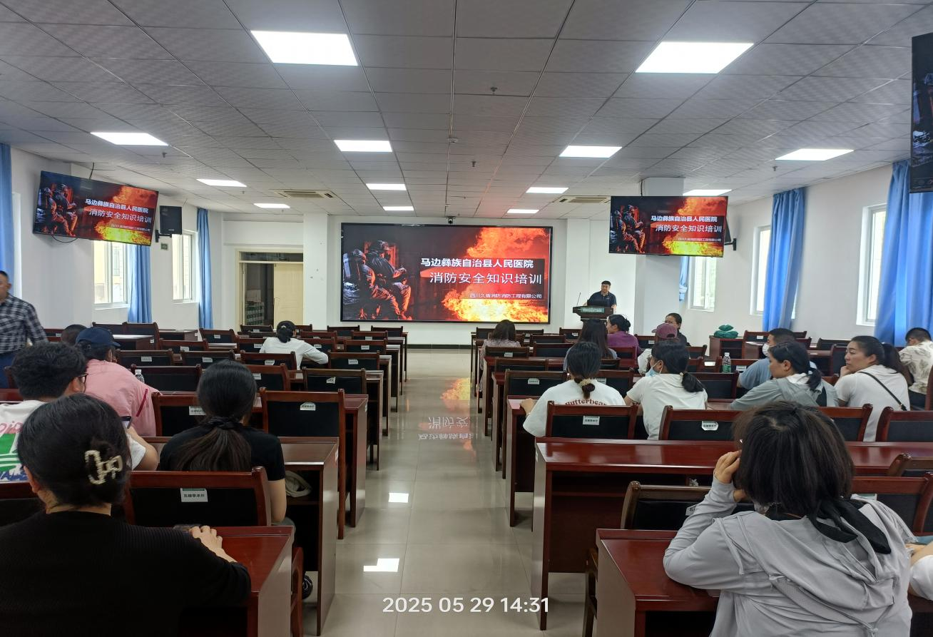 为切实提升全院职工消防安全管理能力,筑牢医院消防安全防线,2025年5月29日14时30分,我院在门诊部五楼学术厅组织开展消防安全知识专题培训,特邀久盾消防工程有限公司讲师李旭波授课,全院120余名职工参加培训。