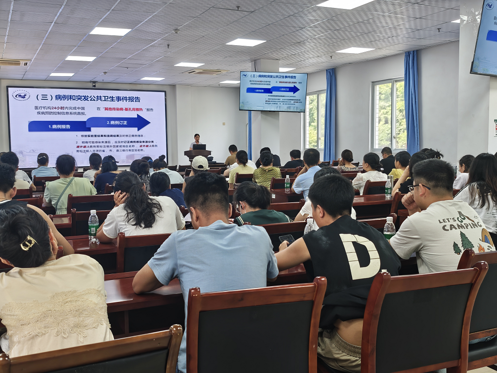 为落实关于蚊媒传染病防控的工作要求,提升全院医务人员对基孔肯雅热等疾病的医疗救治能力,我院于8月1日下午在医院学术厅开展基孔肯雅热等蚊媒传染病医疗救治全员培训。此次培训围绕基孔肯雅热及登革热的临床诊治、基孔肯雅热防控技术指南(2025年版)及登革热防控技术要点课题展开,分别由医务部部长陈啟富、公共卫生科负责人彭玖红主讲,全院100余名医务人员参与。