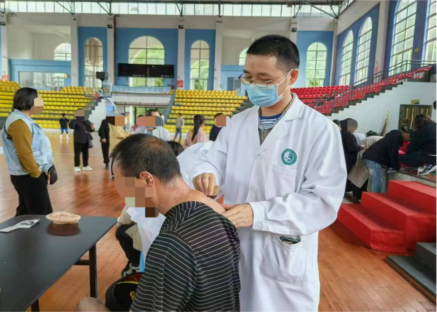 活动现场暖意融融,县中医医院精心筹备的各项中医药服务深受残疾群众欢迎。在“药食同源”健康讲座专区,医师结合残疾群众日常身体状况,针对脾胃虚弱、气血不足、风寒感冒等常见健康问题,用通俗的语言细致讲解食疗调理方法,让大家能通过日常饮食轻松改善体质。中医适宜技术体验区更是人气十足,耳穴压豆、艾灸、刮痧等项目有序开展,医务人员一边操作一边讲解原理,手把手教大家简单的自我护理技巧,不少群众体验后纷纷表示“做完感觉身体轻松多了,中医药真管用”。此外,医务人员还带领残疾群众跟着音乐练习八段锦养生操,动作缓慢柔和、简单易学,既适合日常锻炼,又能帮助调节身心、助力康复,现场参与热情高涨。