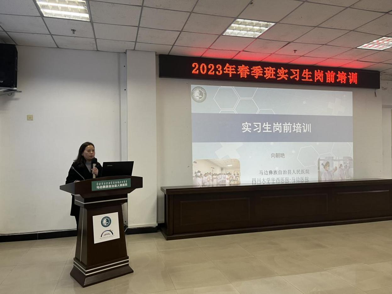 为进一步加强实习生规范管理,提高临床实习质量,2023年3月2日上午11点,护理部联合院感科在门诊五楼学术厅召开了2023年春季班实习生岗前培训会。会议由护理部主任向朝艳主持,各科室护士长、带教老师及48名实习生参会。