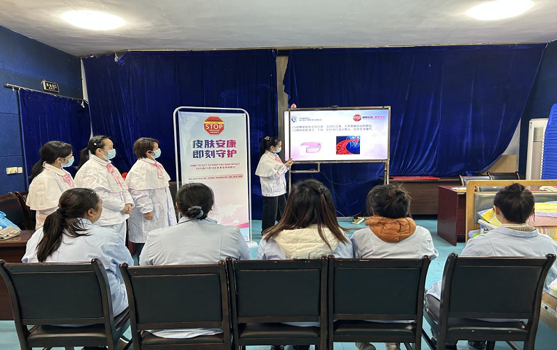 活动现场,志愿者团队用展板图文并茂地介绍了“世界压疮预防日”的由来、“压疮”的定义、分期、危害及治疗方法,详细地阐述了压疮的预防护理。用通俗易懂的语言,深入浅出地诠释了各期压疮的临床表现和治疗方法,老人和照护人员重新认识并关注了压疮,提高了大家的知识储备及护理能力。随后,志愿者团队检查部分卧床老人皮肤受压情况,并为照护人员示范正确的翻身技巧,指导从业人员与时俱进、更新观念,将湿性愈合理论践行到实际工作中,加速压疮愈合,减轻老人痛苦。