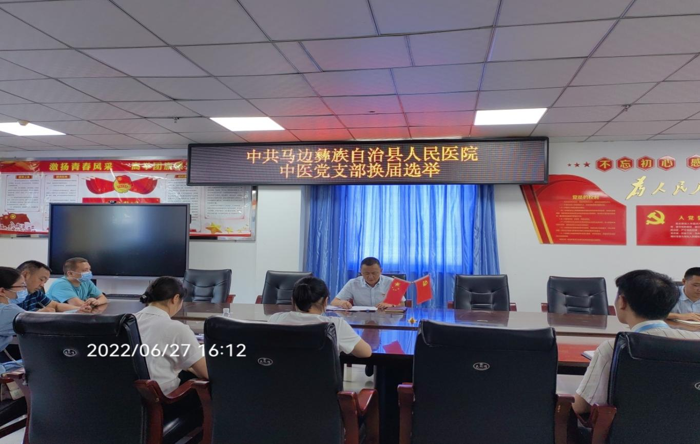 为进一步推进基层组织建设和基层民主政治建设,根据《中国共产党章程》《中国共产党基层组织选举工作条例》等相关规定,经马边彝族自治县卫生健康局机关党委批准,2022年6月27日下午4点,中医党支部在门诊三楼党员活动室召开了党支部换届选举大会,会议由郭业辉主持。