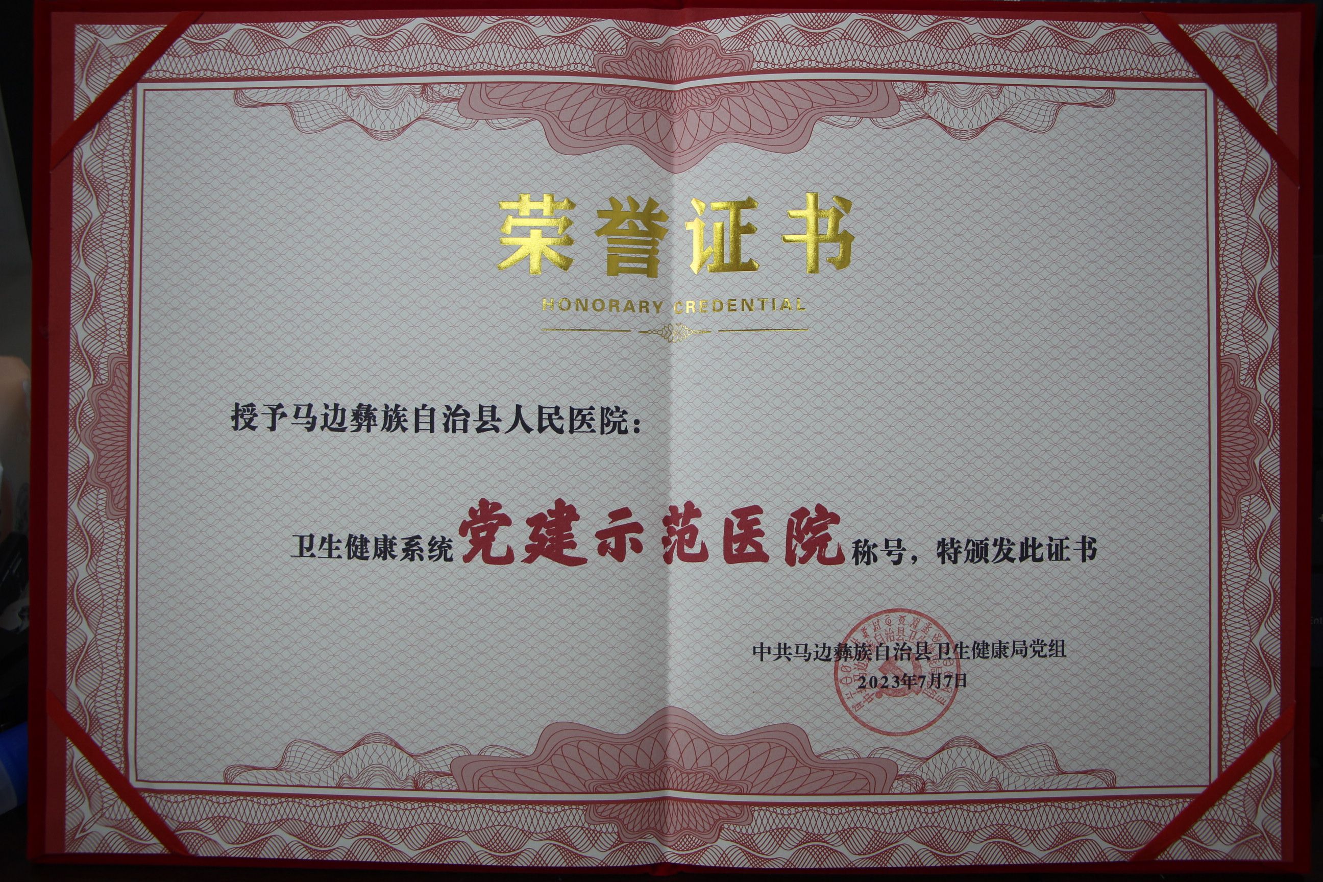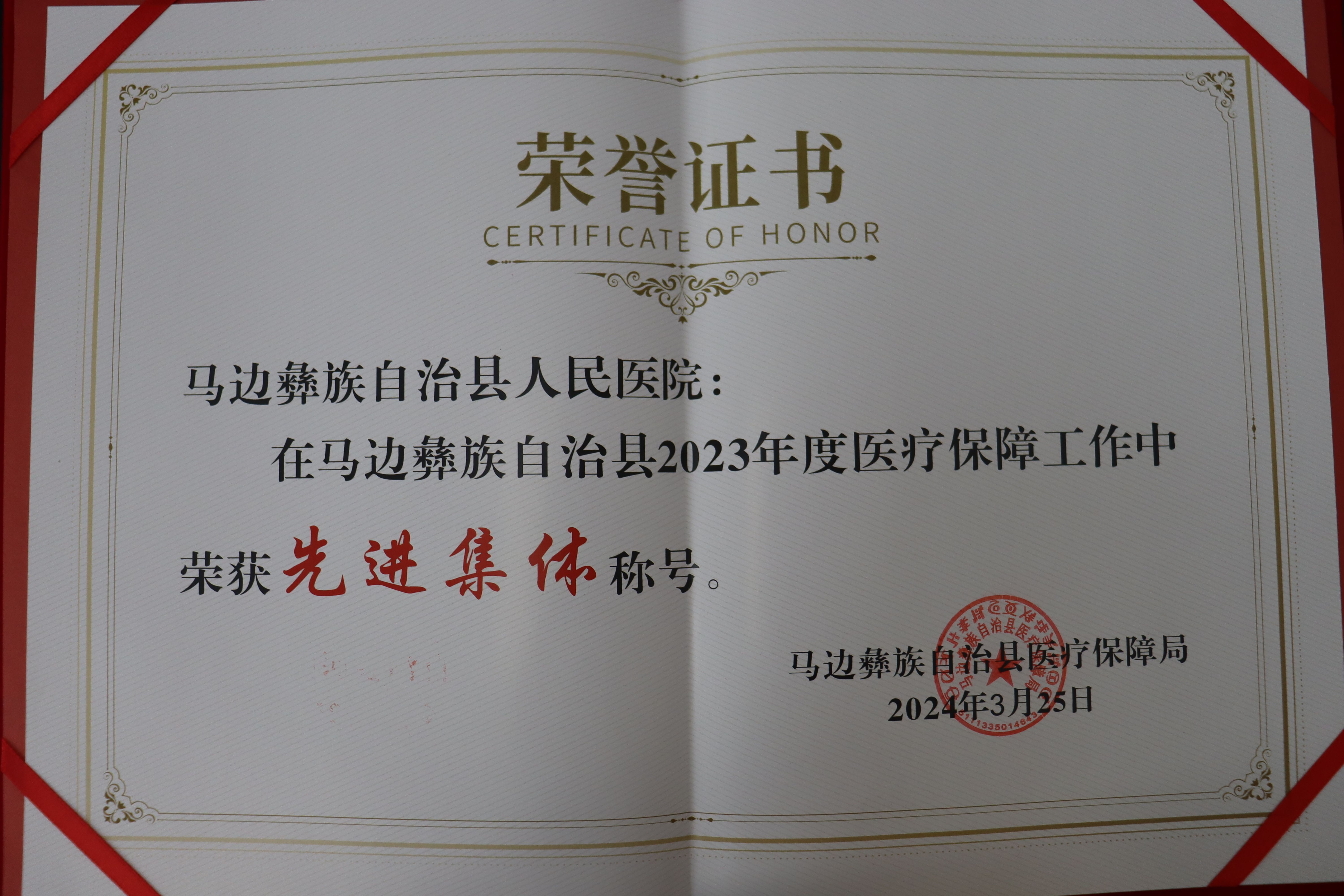 2023年度医疗保障工作中荣获“先进集体”称号
