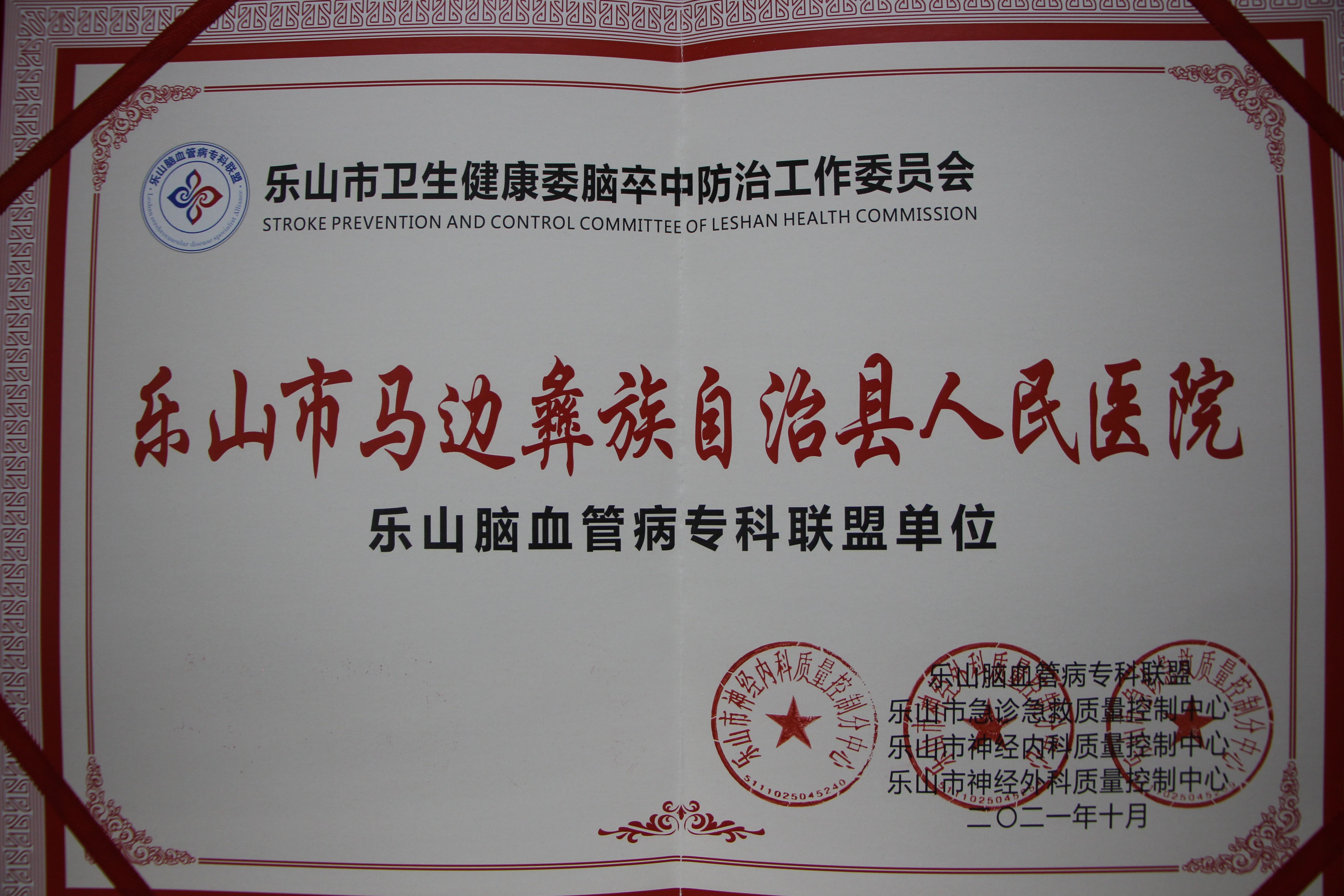2021年乐山市马边彝族自治县人民医院乐山脑血管病专科联盟单位