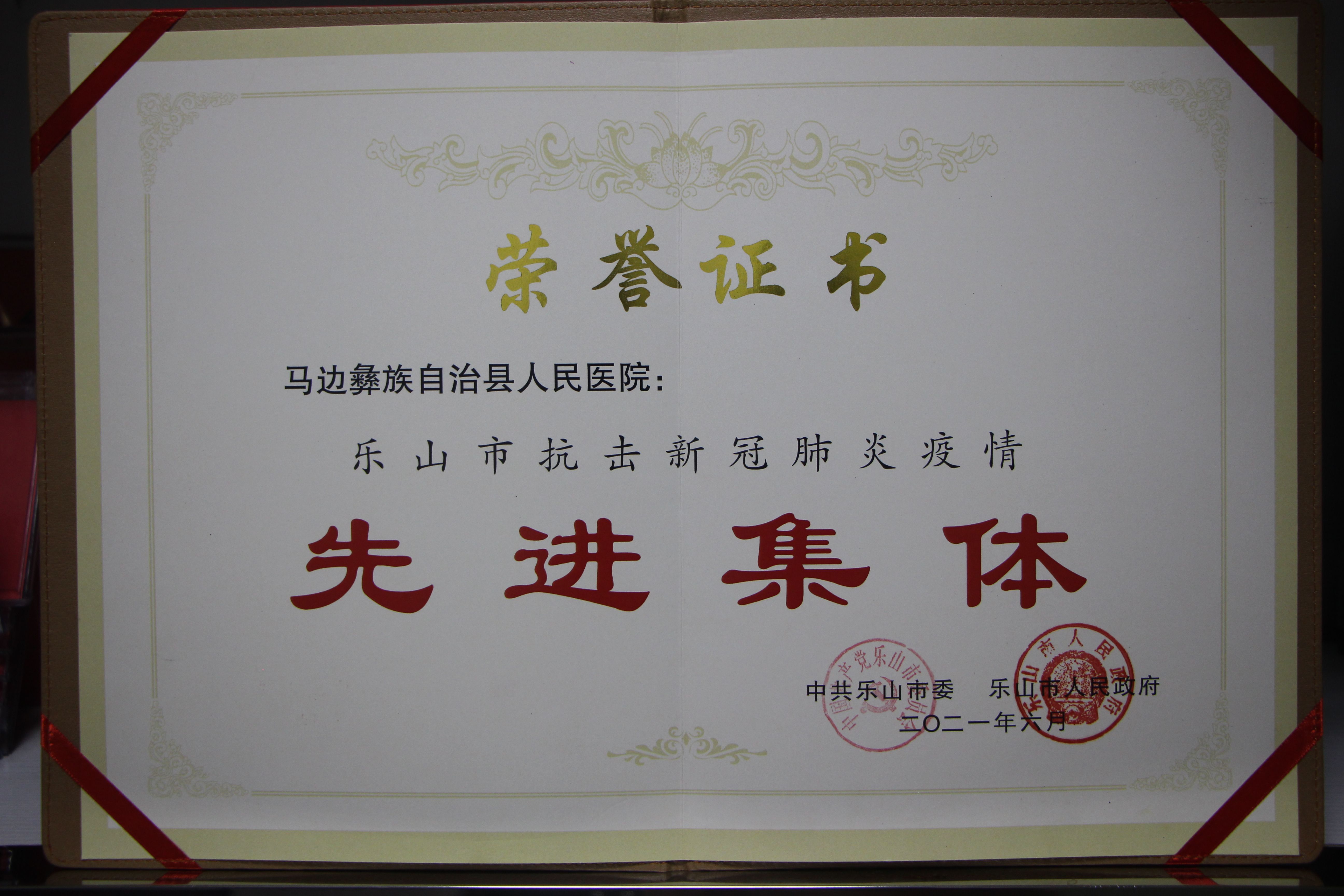 2021年乐山市抗击新冠肺炎疫情先进集体